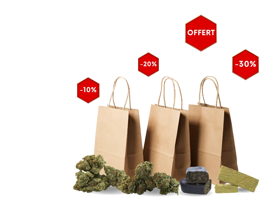 -10 %, -20 %, voire -30 % sur une large gamme de produits, allant des fleurs outdoor accessibles aux indoor premium, sans oublier nos concentrés puissants.